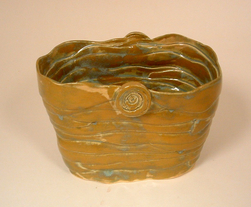 This one is a little muddy in color but interesting. Meanwhile I've just finished another bisque which I'll unload this morning. I am hoping to get the glaze in quickly so I'll have more new work for the market this week. We shall see if the weather cooperates. Thanks for reading and for all your comments.