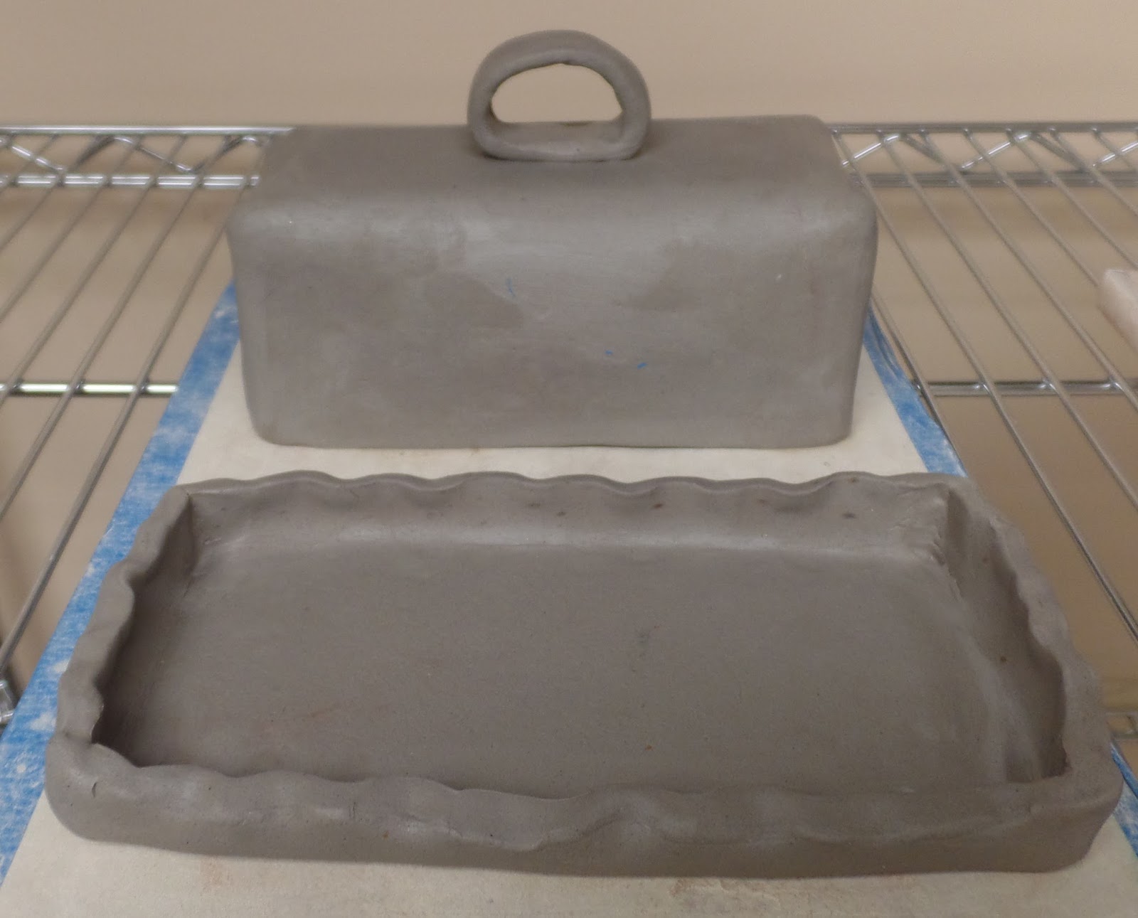 Here's the revised rectangular butter dish. Hope this one fires ok. I plan on alternating between the curved top butter dish and this squared top butter dish. I'll also alternate the handles on each one. If I make enough hopefully some will be keepers.