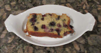 Preheat oven to 350 F. Measure dry ingredients into a bowl. Last add frozen blueberries to dry mixture. In a separate bowl mix wet ingredients. Add wet ingredients to dry ingredients. If batter is too stiff add a splash or two of milk. Brush olive oil on bottom and sides of loaf pan, insert parchment paper across loaf pan, leaving some above the top to ease in removal of breal. Oil parchment paper as well. Pour batter into loaf pan. Previous recipes I used 1/2 cup heavy cream and 1/4 cup of melted butter instead of the ricotta cheese. The ricotta cheese works just as well. Who knew.